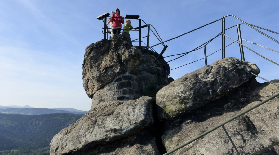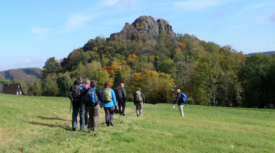 Wir besteigen den Jedlová (Tannenberg), Tolštejn (Tollenstein), Stožec (Schöber), Hvozd (Hochwald), Sokol (Falkenberg) und den sagenumwobenen Fels Popova skála (Pfaffenstein). Eine Tour mit herrlichsten Ausblicken, einem wildromantischen Tal und Übernachtung in einem Umgebindehaus.