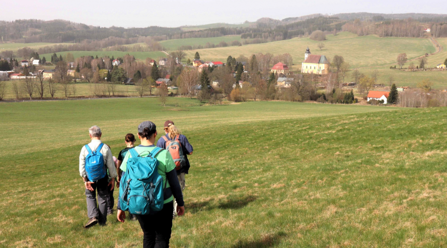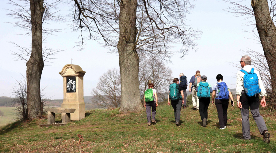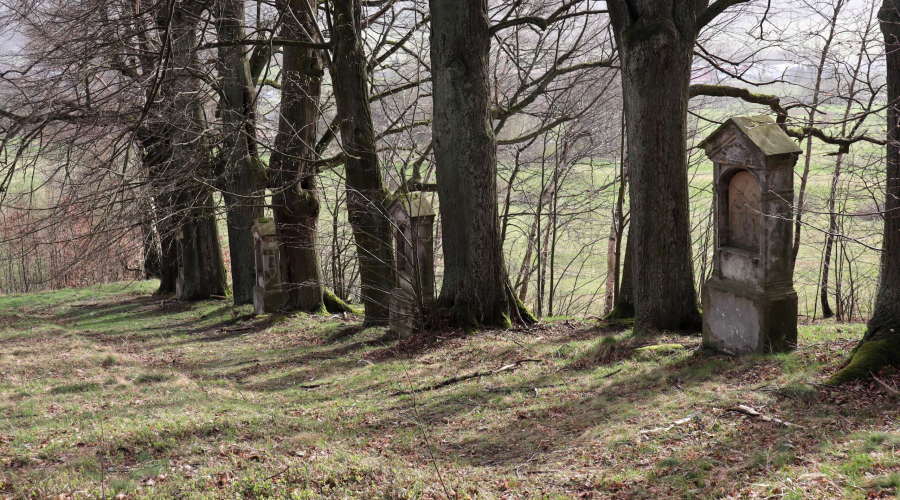Und er hat viele historische Kreuzwege. Weil Ostern ist, so ist das ein guter Anlass, drei davon anzusehen. Vom Mikulášovice drehen wir eine Runde bis hoch nach Jáchym und wieder runter über Lipová nach Velký Šenov. Da findet sich sicher eine Einkehr.