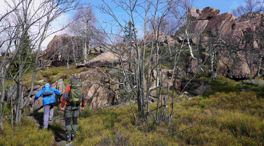 Duftige Nadelwälder und majestätische Buchenwälder wechseln sich ab mit weiten fast kahlen Wiesen und Hochebenen. Felsen und tief eingeschnittene Täler und Gipfel mit weiten Blicken reihen sich aneinander. Und fast nebenbei erklimmen wir alle „14 8000er“ (in Dezimetern) der Biwaktour im Osterzgebirge.